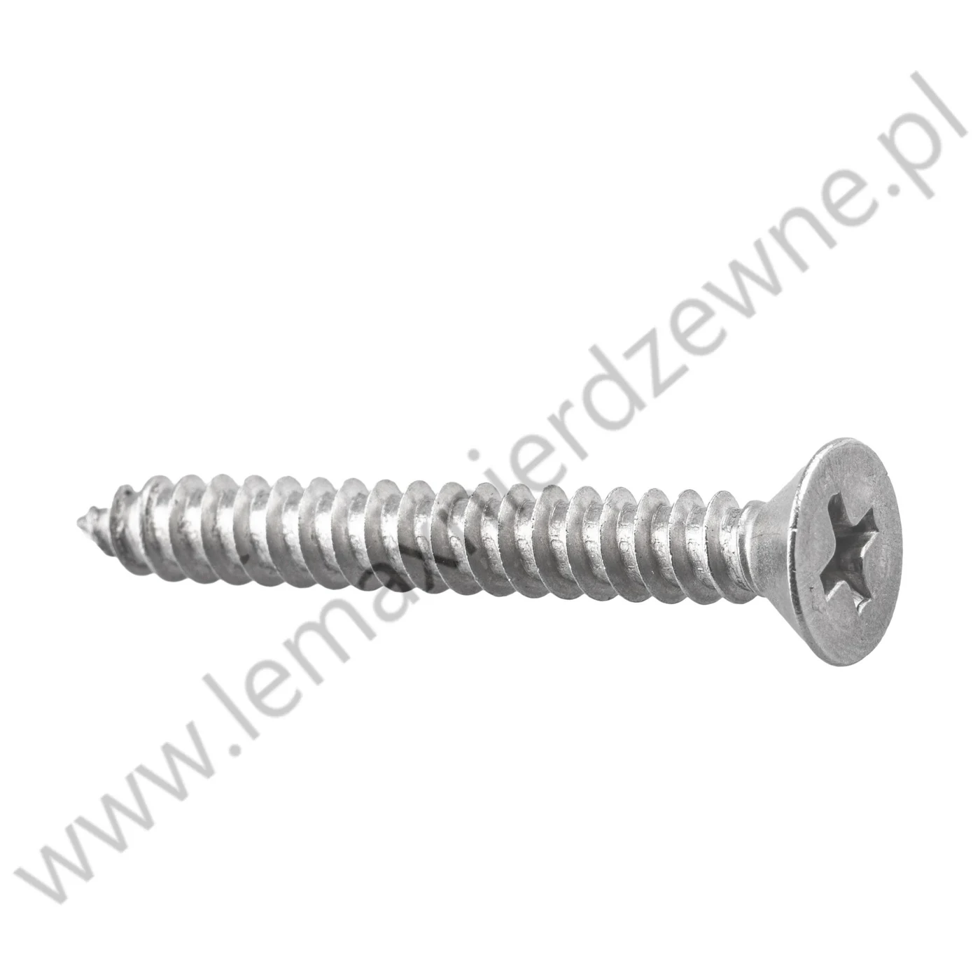 To element złączny ze stali nierdzewnej, wyposażony w łeb stożkowy i gwint samogwintujący. Służy do trwałego łączenia cienkich elementów metalowych, tworzyw sztucznych oraz innych materiałów bez konieczności wcześniejszego gwintowania otworu.