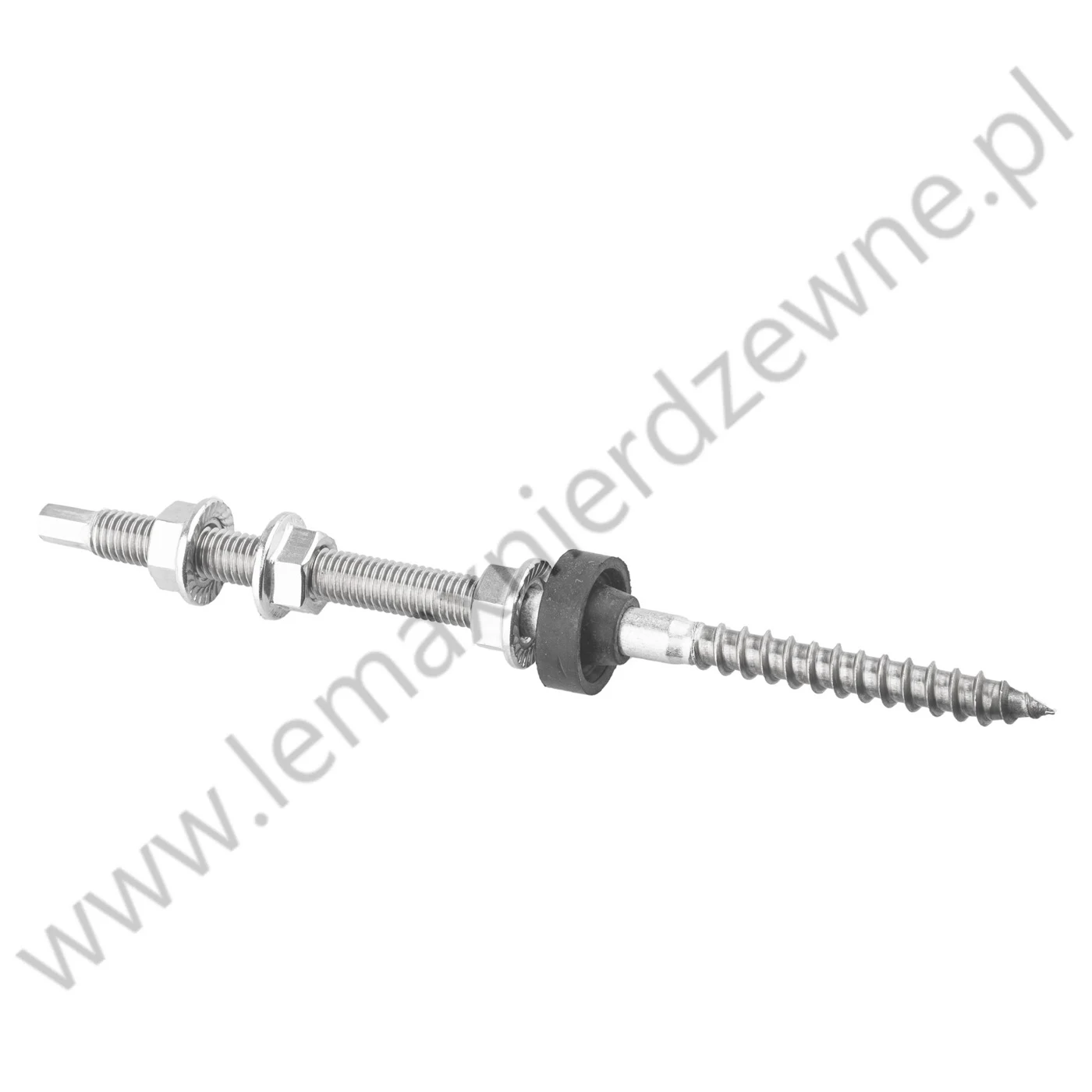 To specjalistyczny element złączny wykonany ze stali nierdzewnej, oferowany w komplecie z nakrętkami