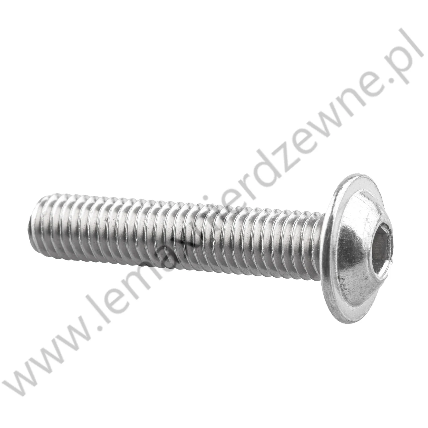 To element złączny wykonany ze stali nierdzewnej, wyposażony w łeb podkładkowy soczewkowy oraz gniazdo imbusowe. Zapewnia trwałe, precyzyjne i estetyczne połączenia w elementach metalowych, drewnianych oraz z tworzyw sztucznych, gdzie wymagana jest wysoka siła docisku i schludne wykończenie powierzchni.